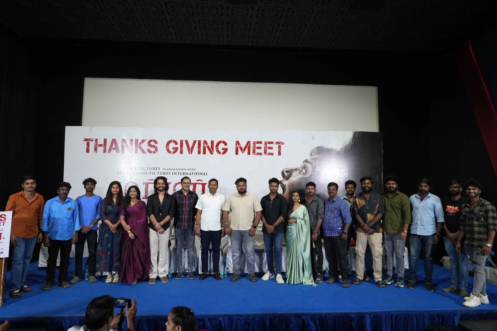 தயாரிப்பாளர், விநியோகஸ்தர் என உங்கள் தரப்பில் எந்த குறையும் வைக்கவில்லை. இந்தப் படத்தின் வெற்றிக்கு முதுகெலும்பாக நீங்கள் தான் இருக்கின்றீர்கள். அதற்கு மிகப் பெரிய நன்றி. தயாரிப்பு நிர்வாகி நாகராஜ் சாருக்கு மிகப் பெரிய நன்றி. படத்தில் நடித்த நடிகர்களுக்கு நன்றி. எல்லாரும் நடிகர்கள் எங்கே, என்ன பிரச்சனை என்று கேட்டீர்கள். எந்த பிரச்சனையும் இல்லை, அனைவரும் இங்கு தான் இருக்கின்றார்கள். ரிஷிக்கு மிக்க நன்றி மும்பையில் இருந்து வந்திருக்கின்றீர்கள். எனக்கு தெரிந்து எம்.எஸ் தோனிக்கு பிறகு எல்லோரும் விரும்பும் வட இந்தியராக இருப்பீர்கள் என நினைக்கிறேன். ரிஷி கேங் என்ற ஹேஷ்டேக் உருவாகி இருக்கிறது. திரையரங்கிலும் அனைவரும் கத்துகிறார்கள். தேவராஜ் சார் மிக்க நன்றி. நிறைய டார்ச்சர் செய்திருக்கிறேன், எவ்வளவு டேக் கேட்டேன் என்று எனக்குத் தான் தெரியும். எவ்வளவு கடினம் என்பது உங்களுக்கும், எனக்கும் தான் தெரியும். இதைத் தொடர்ந்து உங்கள் அனைவருக்கும் அதிக படங்களில் நடிக்க வாய்ப்பு கிடைக்கும் என்று நம்புகிறேன். ஃபவுண்ட் ஃபூடேஜ் என்பதால் இந்தப் படத்தில் ஃபோக்கஸ் புல்லர், துணை ஒளிப்பதிவாளர் மற்றும் உதவியாளர் என தனி குழு ஒன்று எப்போதும் தயாராக இருக்கும். இந்தப் படத்தில் நடிகர்களுக்கு மிகப் பெரிய சவால் அவர்கள் கேமராவை பார்த்து நடிக்க வேண்டும் என்பதாகவே இருக்கும். மற்ற படங்களில் கேமராவை பார்க்க வேண்டியதில்லை. ஆனால், இந்தப் படம் வித்தியாசமானது. பலர் இந்தப் படத்தை தொடர்ந்து அடுத்த படத்தில் நடிக்கும் போது கேமராவை பார்த்து திட்டு வாங்கியுள்ளார்கள், மன்னித்து விடுங்கள். ஒளிப்பதிவாளர் ஜேசனுக்கு நன்றி தெரிவித்துக் கொள்கிறேன். நிறைய ரீடேக், முதுகுவலி அதன்பிறகு சிகிச்சை என எல்லாம் முடிந்து தற்போது இங்கு வந்திருக்கிறார். ஒரு இயக்குநரின் ஒளிப்பதிவாளர் இவர். எத்தனை முறை ரீடேக் என்றாலும் சற்றும் தளர்வின்றி எடுத்துக் கொடுத்தார், மிக்க நன்றி. படத்தொகுப்பாளர் ரோஹித் தற்போது இணை இயக்குநராகவே மாறிவிட்டார். நான் எங்கு சென்றாலும் அவர் தான் என்னை அழைத்து செல்கிறார். மிக்க நன்றி ரோஹித். உங்களுக்கு அதிக படங்கள் கிடைக்கும். நாமும் சேர்ந்து பணியாற்றுவோம். எங்கள் குழுவில் கடைசியாக இணைந்தவர் கெவின் ஃபிரடெரிக், ஆனால் இன்று என்னைத் தாண்டி அவரை பற்றி தான் முதலில் பேசுகிறார்கள். மிக்க நன்றி கெவின். உங்களின் கடின உழைப்பு அபாரமானது. நான் எப்போது அழைத்தாலும் நீங்கள் பணியாற்ற வந்துள்ளீர்கள். நாம் அதிக சோதனைகளை செய்தோம். அதற்கான அங்கீகாரத்தை நாம் திரையரங்கிற்கு சென்று பார்த்தோம். மிகவும் மகிழ்ச்சியாக உள்ளது. குகன் சாருக்கு 