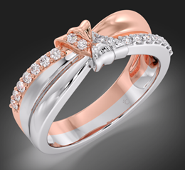 This exquisite piece features a delicate diamond-studded bow, symbolizing femininity and elegance. The intertwining bands add a contemporary touch, making it a perfect statement piece for both special occasions and everyday wear.