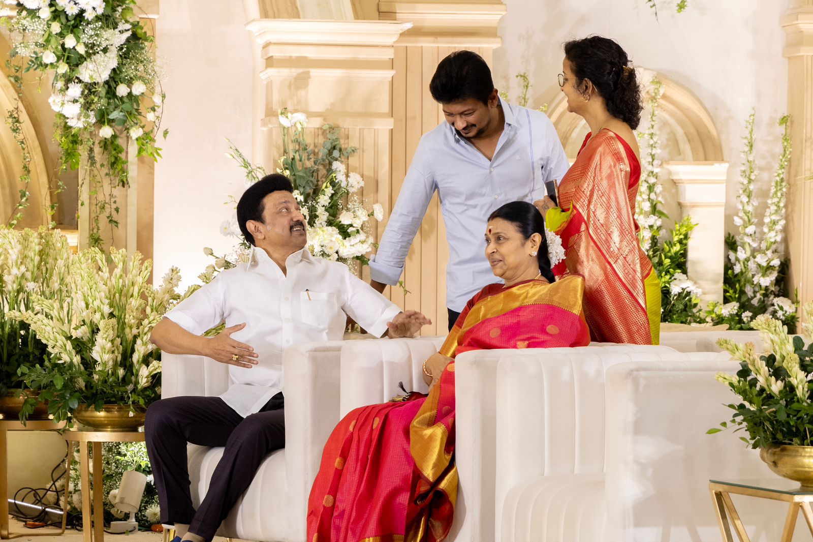 இதில் மாண்புமிகு தமிழக முதமைச்சர் மு.க.ஸ்டாலின் மற்றும் அவரது துணைவியார் துர்கா ஸ்டாலின் கலந்துக் கொண்டு மணமக்களை வாழ்த்தினர்.
