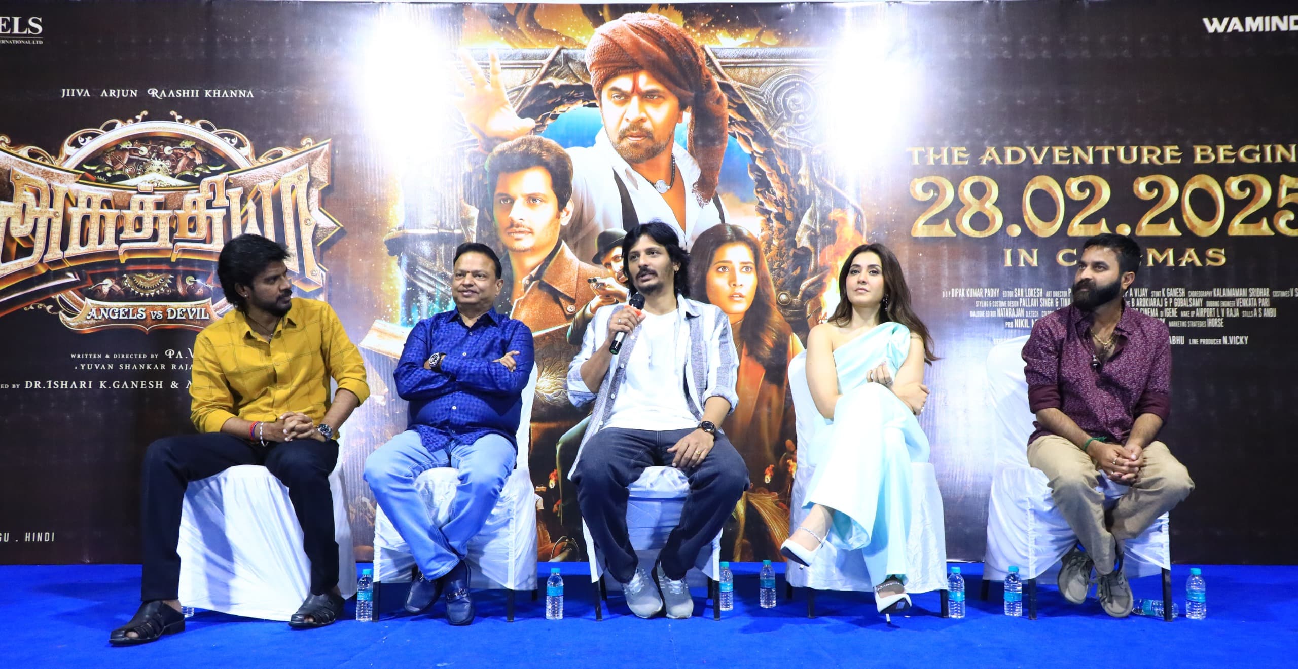 ஃபேண்டஸி ஹாரர் திரில்லர் ஜானரில் கமர்ஷியல் என்டர்டெய்னராக தயாராகி இருக்கும் ‘அகத்தியா’ திரைப்படம் பிப்ரவரி 28ம் தேதி முதல் தமிழ், தெலுங்கு, இந்தி ஆகிய இந்திய மொழிகளில் 800க்கும் மேற்பட்ட திரையரங்குகளில் வெளியாகிறது. சென்னையில் நடைபெற்ற பத்திரிகையாளர் சந்திப்பில் தயாரிப்பாளர் ஐசரி கே கணேஷ், இயக்குநர் பா.விஜய், நடிகர் ஜீவா, நடிகை ராஷி கண்ணா, ஒளிப்பதிவாளர் தீபக் குமார் பதி ஆகியோர் கலந்து கொண்டனர்.