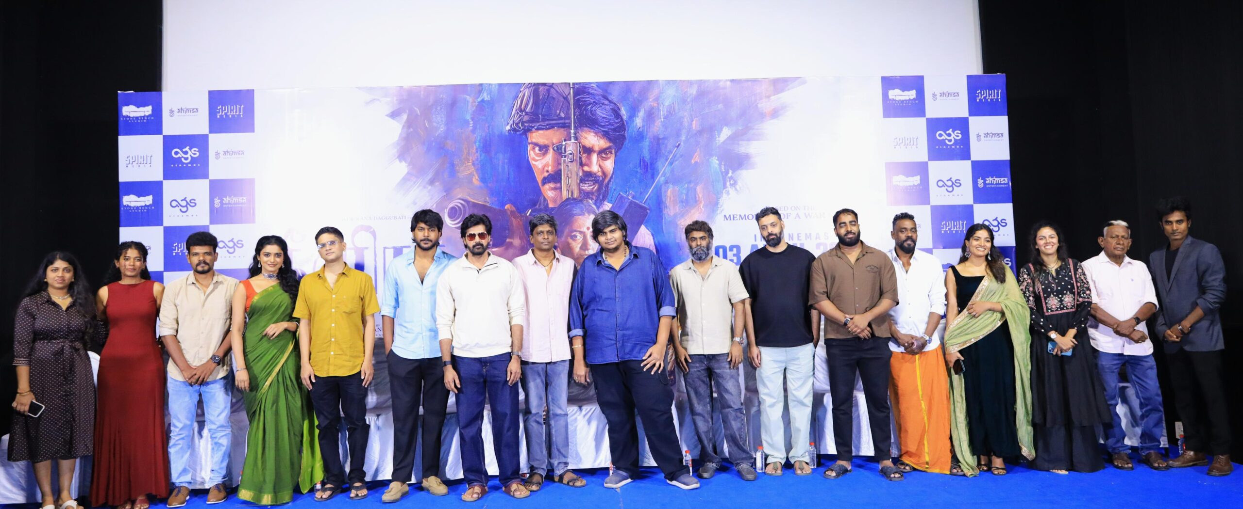 இந்த படத்தை காண்பித்தவுடன் பேராதரவு வழங்கிய ஸ்பிரிட் மீடியா நிறுவனத்தின் தயாரிப்பாளர் நடிகர் ராணாவிற்கும், தமிழகம் முழுவதும் வெளியிடும் ஏஜிஎஸ் நிறுவனத்தை சார்ந்த அர்ச்சனா கல்பாத்தி, ஐஸ்வர்யா கல்பாத்தி மற்றும் சிந்தன் அவர்களுக்கும், அயல்நாடுகளில் வெளியிடும் அஹிம்சா என்டர்டெயின்மென்ட் நிறுவனத்தின் விதுர்ஸ் அவர்களுக்கும் நன்றி