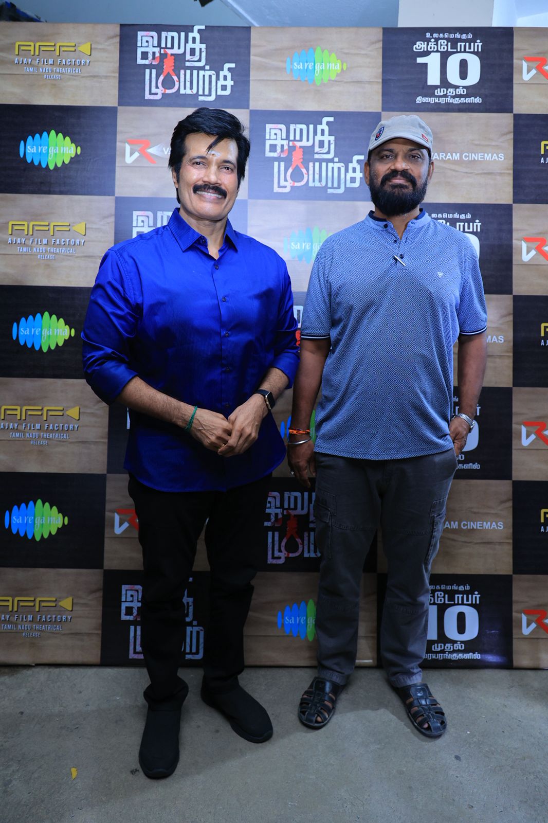 இயக்குநர் ஆர். வி. உதயக்குமார் பேசுகையில், ” இறுதி முயற்சி படத்தின் முன்னோட்டம் சிறப்பாக இருந்தது. நண்பர் ரஞ்சித் எமோஷனலாக நடித்திருக்கிறார். நடிகர் ரஞ்சித் படத்தின் ஒவ்வொரு காட்சியிலும் சிறப்பாக நடித்திருப்பார் என இந்த முன்னோட்டத்தை பார்க்கும்போது தெரிகிறது. இந்த கதையை நன்றாக உள்வாங்கி உணர்ந்து கொண்டு ரஞ்சித் நடித்திருக்கிறார் எனத் தோன்றுகிறது. இந்த விசயத்தில் இயக்குநர் என்ன எதிர்பார்க்கிறாரோ…! அதற்குள்ளாகவே வளைய வந்து நடித்திருக்கிறார். இதனை ஒரு சில நல்ல நடிகர்களால் மட்டுமே நடிக்க முடியும். அந்த வகையில் இந்த படத்தில் சிறப்பாக நடித்திருக்கும் ரஞ்சித்தை பாராட்டுகிறேன். வாழ்த்துகிறேன்.