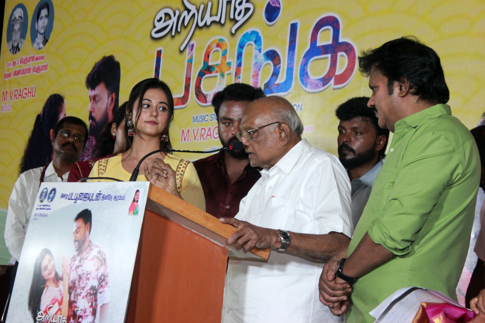 திமுக பேச்சாளர் சிவாஜி கிருஷ்ணமூர்த்தி பேசுகையில், “சினிமாவில் முன்னேறுவதை விட, முன்னேறிய பிறகு அந்த இடத்தில் இருந்து சறுக்கி விடாமல் இருக்க வேண்டும். எனவே, என் தம்பி ரகுவுக்கு நான் சொல்வது, நீங்கள் வெற்றி என்ற படிக்கட்டில் ஏறும் போது அதை எண்ணிக்கொண்டு ஏறுங்கள், ஏறிய பிறகு அந்த இடத்தில் இருந்து இறங்கிவிடாமல் பார்த்துக் கொள்ளுங்கள். தம்பி பேசும் போது, பலர் வாய்ப்பு கிடைக்காமல் இருக்கிறார்கள், எனக்கு அந்த வாய்ப்பு கிடைத்திருக்கிறது, எனவே தம்பியை வாழ்த்துங்கள் என்று சொன்னார். 19 வயதிலேயே நான் திருமணங்களுக்கு சென்று வாழ்த்தியவன், நான் வாழ்த்தியவர்கள் அனைவரும் சீரும் சிறப்புமாக இருக்கிறார்கள். எனவே, தம்பி ரகு மிகப்பெரிய வெற்றியை பெறுவார், அவர் வெற்றி பெற்ற பிறகு என்னை மறவாமல் இருக்க வேண்டும், என்று கேட்டுக் கொண்டு வாழ்த்தி விடைபெறுகிறேன், நன்றி.” என்றார்..