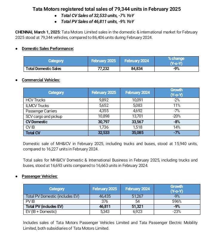 Tata Motors registered Total sales of 79K+ units in February 2025