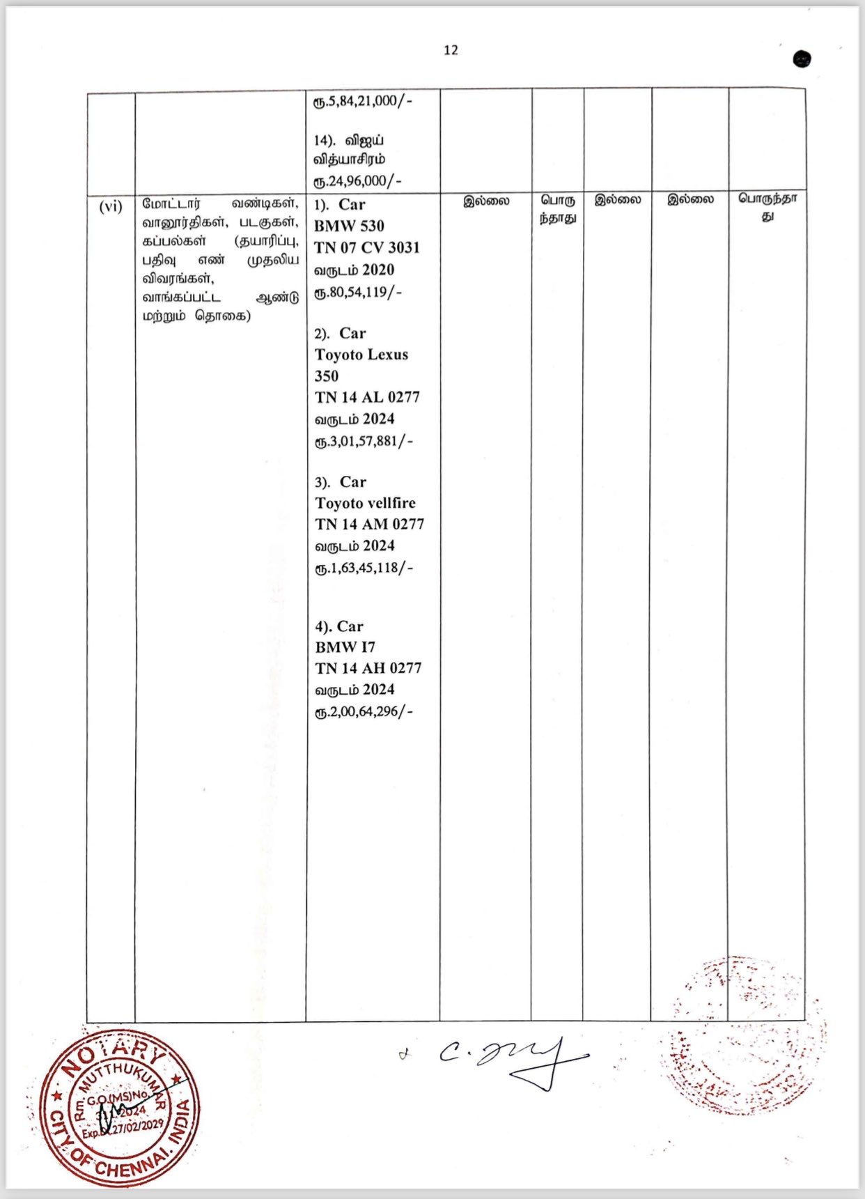 விஜய் சமர்ப்பித்துள்ள சொத்து விவரங்கள் பட்டியல் இதோ..