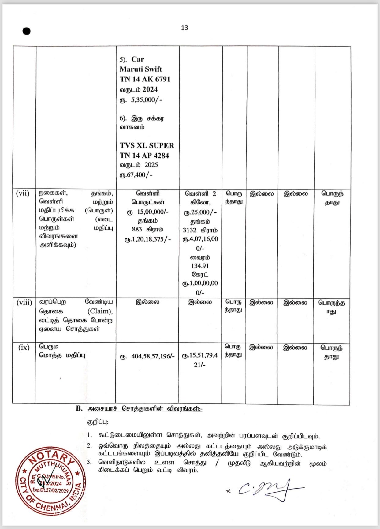 பூர்வீக சொத்தின் மதிப்பு ரூ.21.83 கோடி.